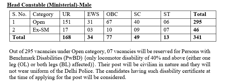 Departmental candidates (Delhi Police): Up to 40 years (UR/EWS), 43 years (OBC), 45 years (SC/ST)