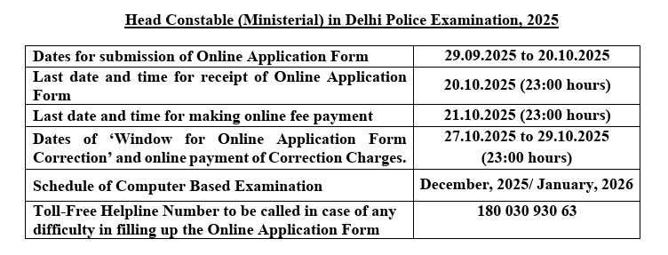 Click on Apply Online under “Head Constable (Ministerial) in Delhi Police Examination 2025”.