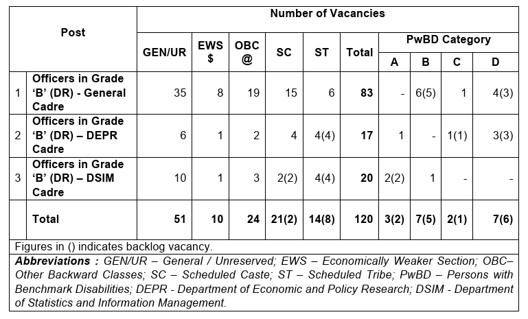 Post Name: Officers in Grade B (DR) – General / DEPR / DSIM
