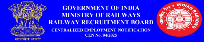 The Railway Recruitment Board (RRB) under the Ministry of Railways, Government of India has released the Centralized Employment Notification (CEN 04/2025) for the post of Section Controller. This is a major opportunity for candidates preparing for sarkari job alert, govt job alert, free job alert, and latest govt jobs.